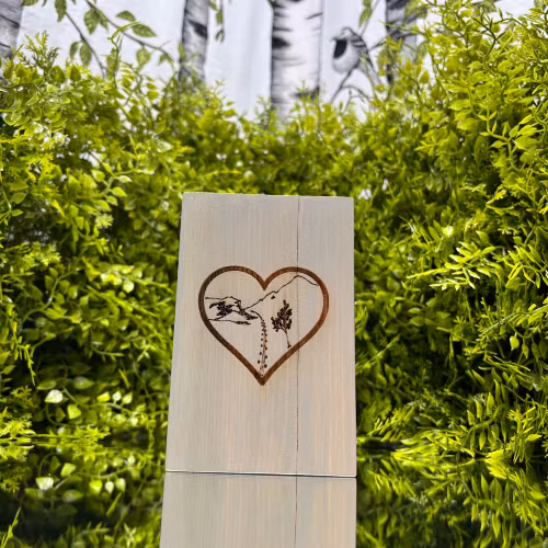 Serien "Fjäll" står för lugn, vidder och ren nordisk enkelhet – vilket gör lyktan till en uppskattad gåva året runt. Ljuslyktan har vi tillverkat av gran och laserat i en behaglig gråfärg. På ena sidan av lyktan har vi graverat en text med vår egen förklaring av fjäll. FJÄLLET [MOWN] + [TIN] = a place to visit, when you want to feel on top of the world & rock your own petiteness, in this huge universe. På motsatt sida har vi graverat ett hjärta med vår tolkning av fjället Sielkentjakke.