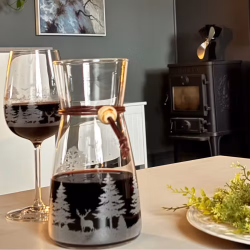 Lyft dukningen med en vacker vinkaraff med gravyr, i vår Skog-serie, skapad för dig som älskar naturens lugn och fina detaljer. Vår karaff med gravyr i serien skog är designad av oss på Odd by Nature, och Skogsserien är framtagen för att förena funktion med känsla. Det mjuka skogsmotivet fångar ljuset på ett levande sätt och skapar en harmonisk, naturnära atmosfär runt bordet. Den passar lika bra till vardags med vatten eller som en vinkaraff till festligare tillfällen. Den avtagbara läderremmen med älghornskulan vi själva skapat, ger ett varmt och genuint uttryck - en liten detalj som gör stor skillnad. Precis som våra andra produkter i Skog-serien är karaffen ett dekorativt, men praktiskt inslag i ditt hem. Kombinera gärna karaffen med våra graverade glas och ljuslyktan i samma serie för en enhetlig och naturinspirerad dukning som skapar en effektfull och mysig atmosfär vid bordet. Denna personliga karaff passar inte bara som karaff utan även som en blomvas. Karaffen med naturmotiv är lika uppskattad i ditt eget hem som en genomtänkt present till någon som älskar unik design. Skogsserien passar till alla med intresse av inredning eller att duka fint till trevliga middagar med vänner och familj, till jägaren, naturmänniskan eller alla som uppskattar vacker gravyr med unik design. Perfekt som present till: födelsedag, inflyttning, bröllop, mors dag, värdinnegåva